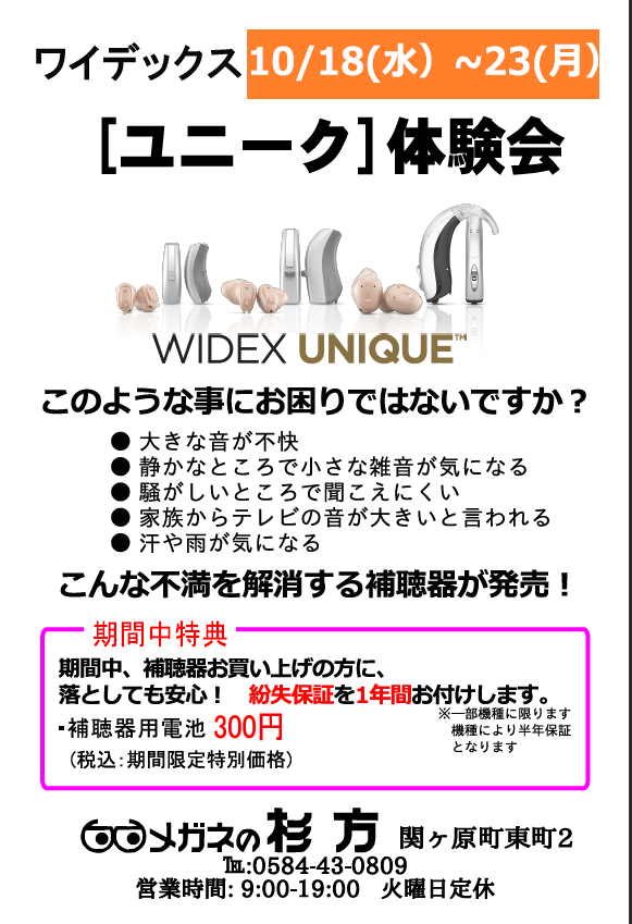 ◇補聴器◇WIDEX UNIQUE ワイデックス ユニーク体験会 始まります◇