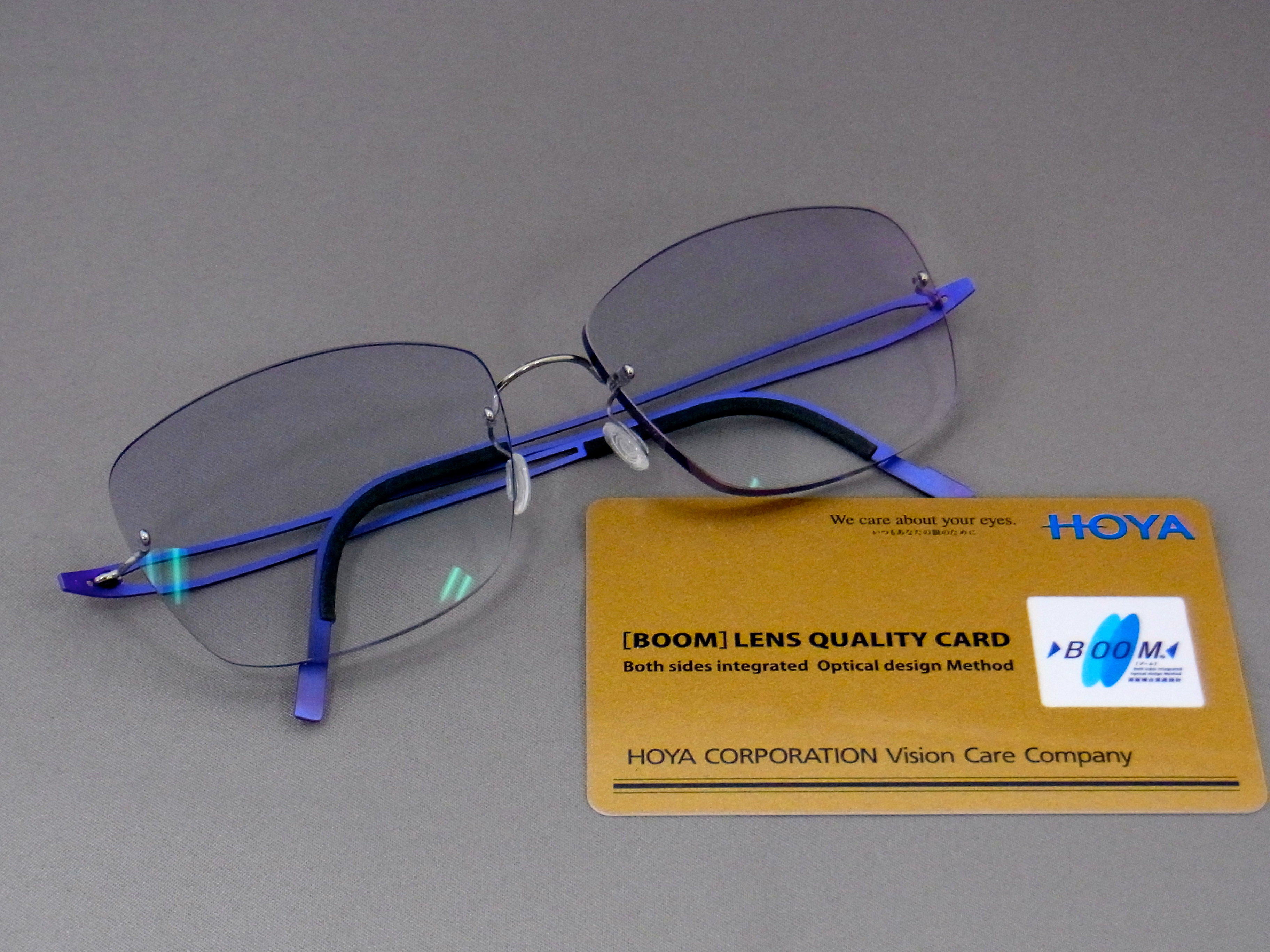 LINDBERG SPIRIT TITANIUM + HOYA LSV1.6VG付き 2013.07.21 リンドバーグ スピリットチタニウムを遠近両用メガネとして。 超軽量縁なしフレームのリンドバーグは、ネジをしめたりボルトやナットを付ける必要はありません。 ネジも溶接も使用しません。 素材は100%チタン素材。 毎日掛ける方にはおすすめのフレームです。 レンズはHOYAの遠近両用レンズLSV1.6VG。 ユレ・ユガミの軽減はもちろん、遠くスッキリのタイプと少し手元重視のタイプと選択も可能です。 コーティングは、HOYAで最強のVGコート付きです。
